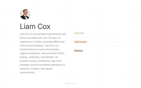 I am Liam Cox, an Australian businessman and former journalist with over 20 years of experience in media, corporate affairs, and crisis communications. Throughout my career, I have worked closely with some of Australia's most prominent CEOs, leading corporations, high-profile individuals, and boards, providing them with high-level strategic counsel and tactical solutions in fast-paced, high-stakes environments.